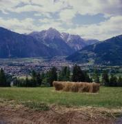 Blick auf Lienz und Spitzkofel, Heuschober im Vordergrund