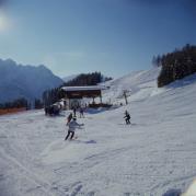 Funivia Hochsteinbahn, sciovia e stazione, sciatori